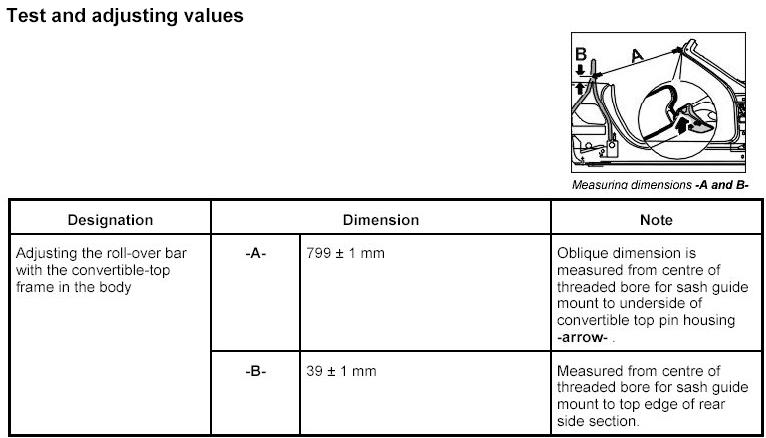 The convertible top is in the service position. Refer to Removing and installing convertible top.