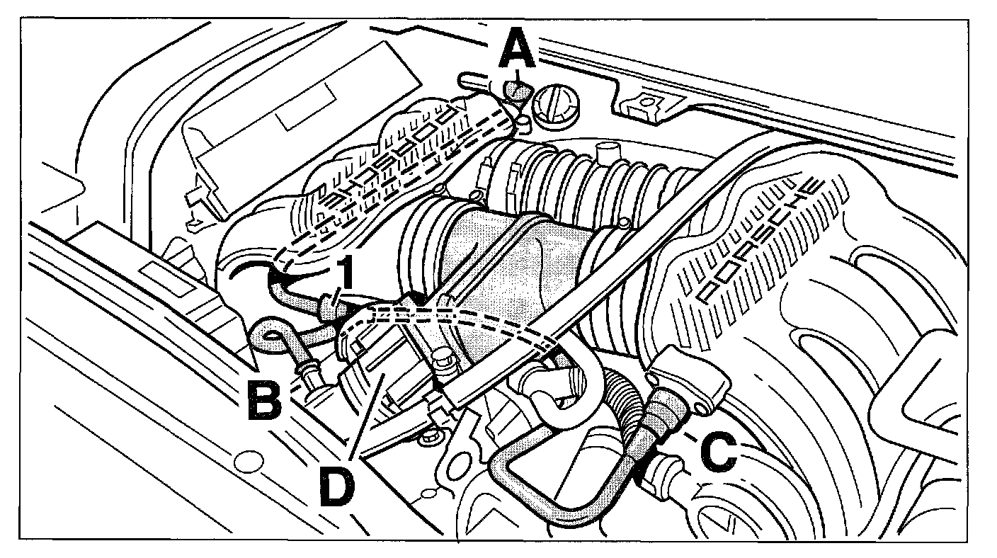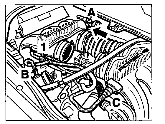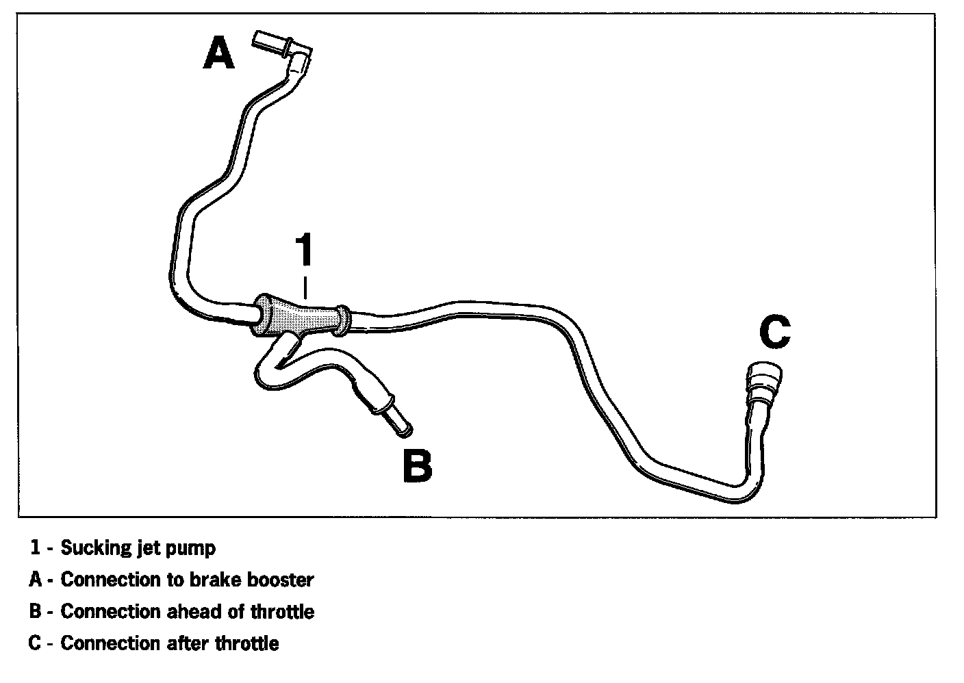 The sucking jet pump -1- helps to increase the engine vacuum, connection -A-, required for the brake booster, especially during the engine warm-up phase.