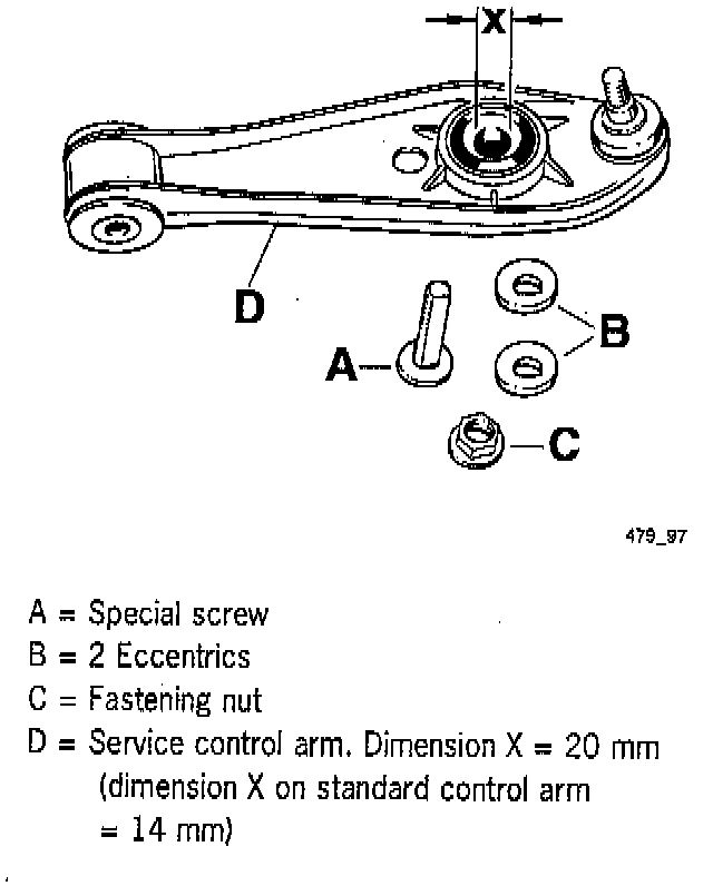 The caster eccentric MUST NEVER be used to compensate for incorrect caster values resulting from deformed parts.