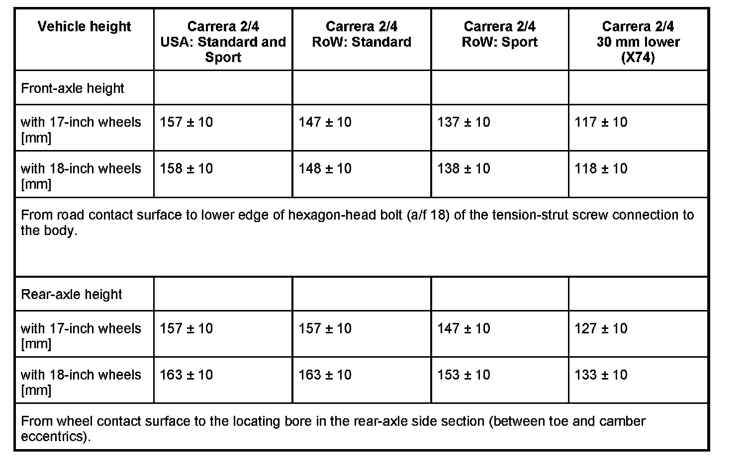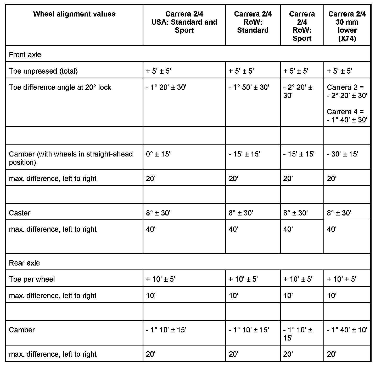 Adjusting values for suspension alignment - 911 Carrera