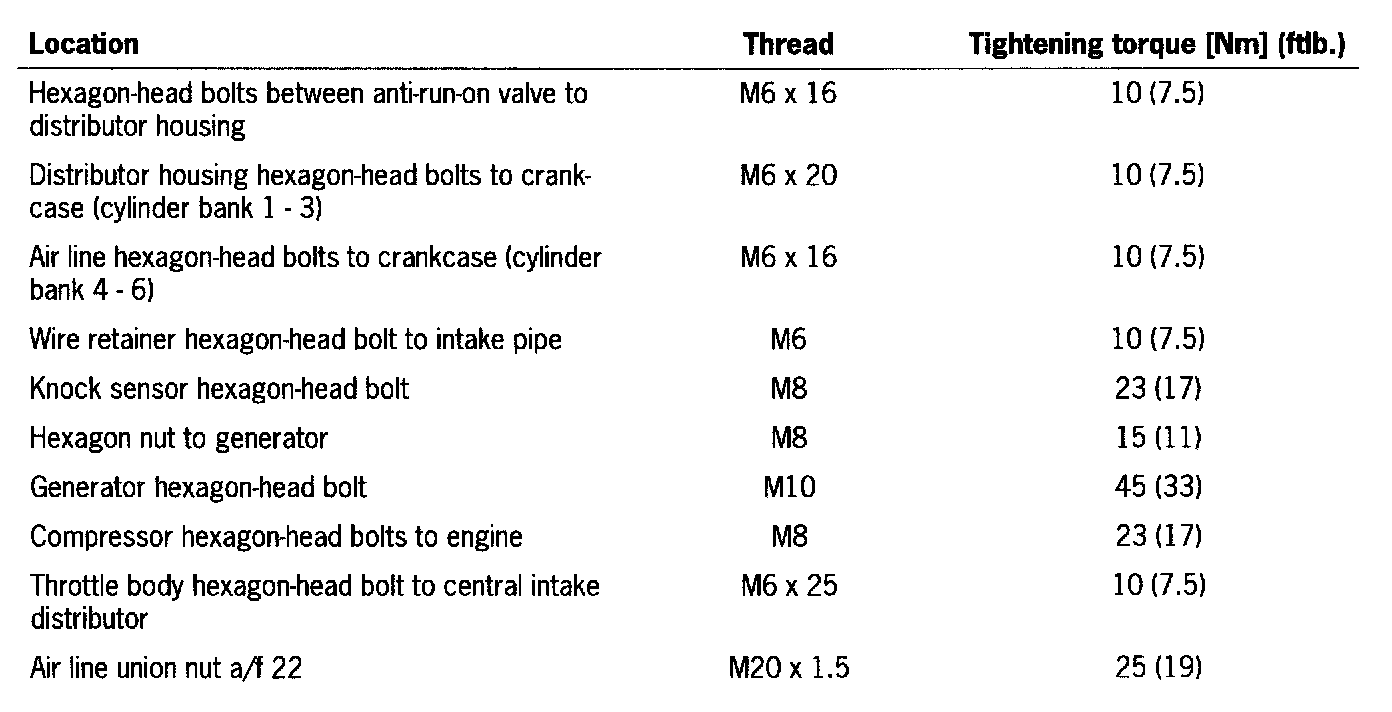 Tightening torque for M6 hexagon-head bolts 10 Nm (7.5 ftlb.)