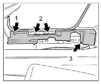 4. Unscrew fastening screws -2- and nuts -3- and carefully pull the support up and out of the retaining points.