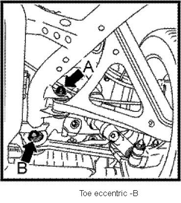 - After loosening fastening nut, turn toe eccentric -B- as required.