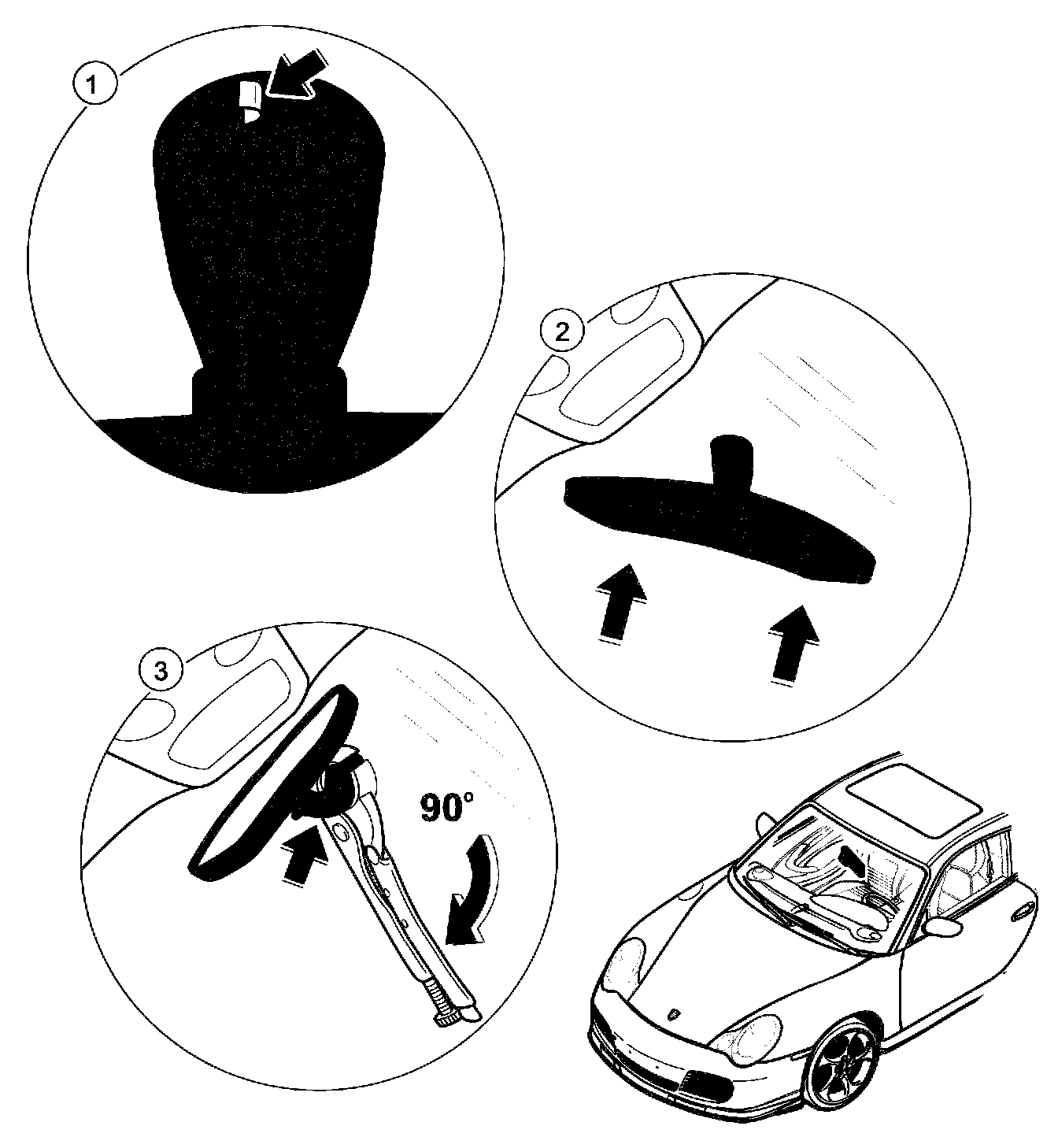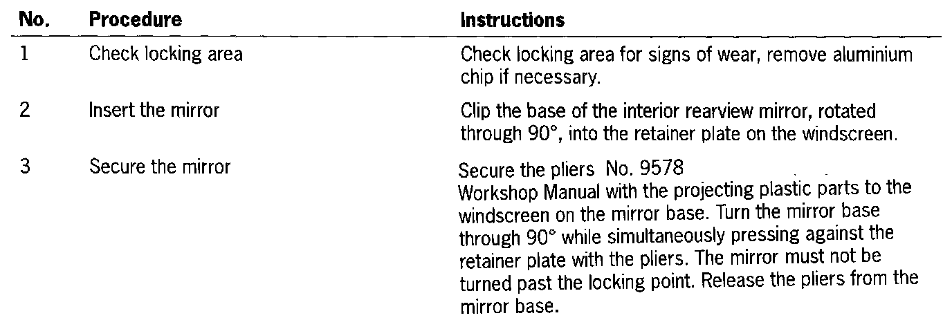 - The small aluminium chip in the locking area must be removed after the interior rearview mirror has been removed from its base, as it otherwise cannot be ensured that the mirror will be seated securely when fitted.