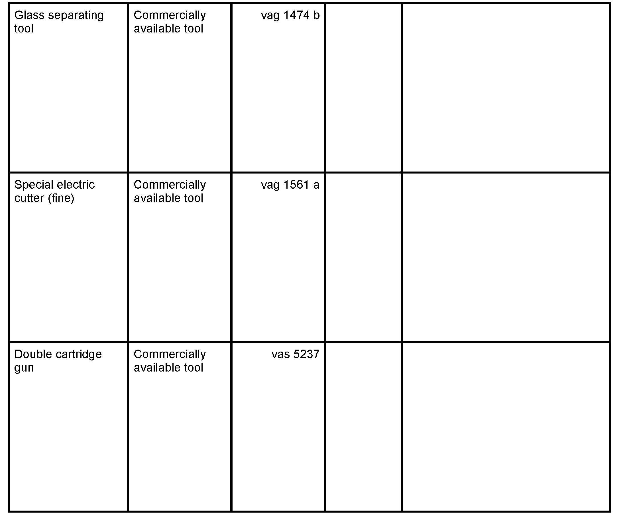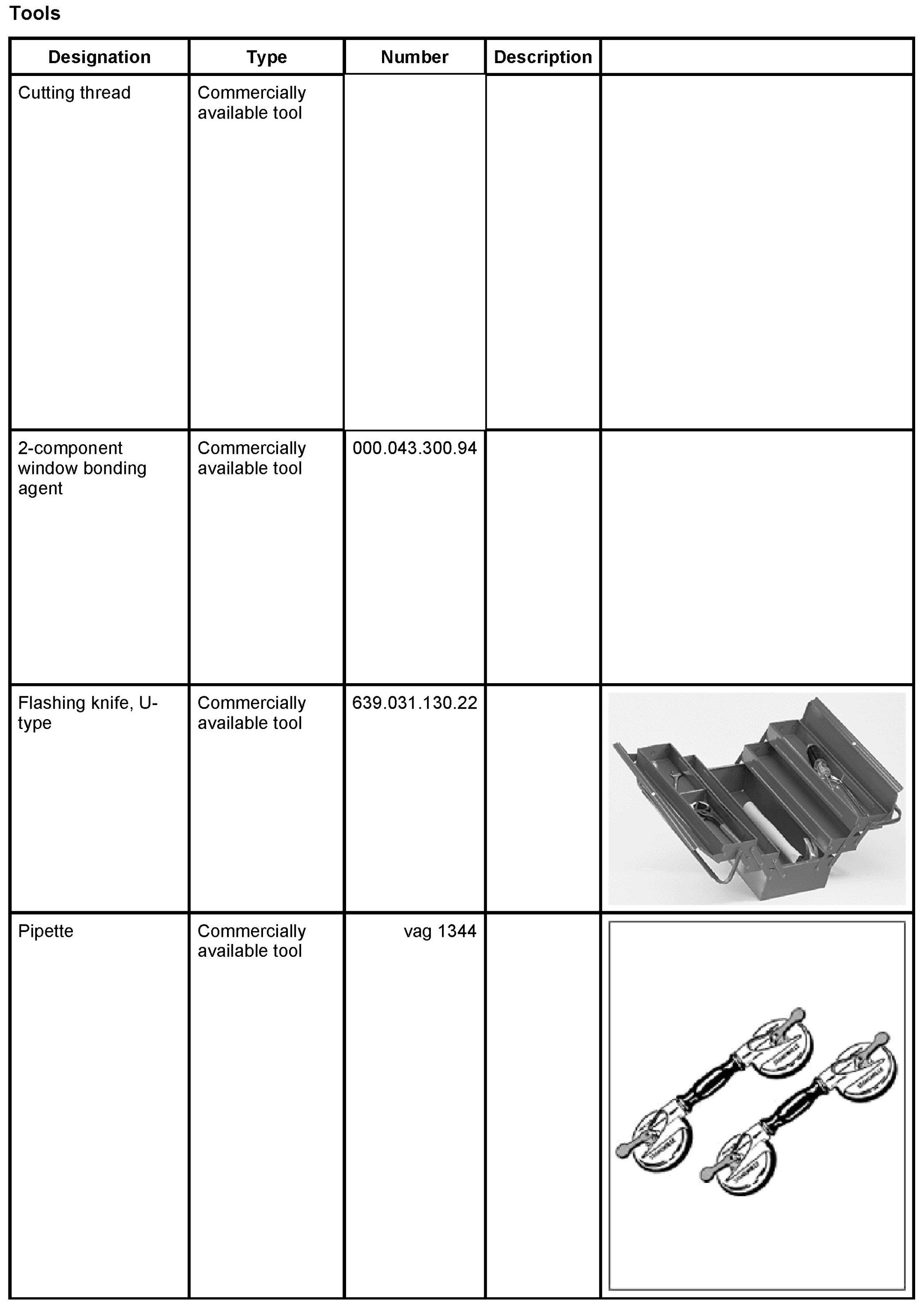 The following tools and materials are required for removing and installing the windscreen with 2-component adhesive