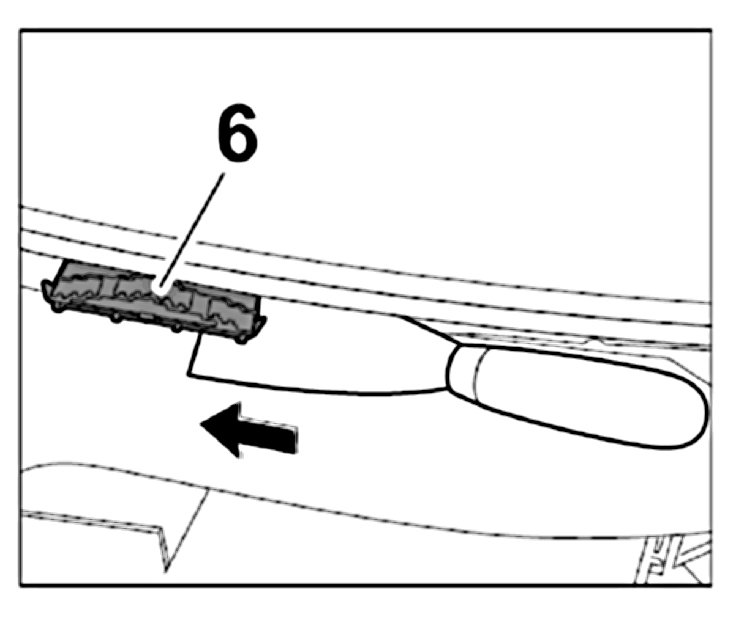 8.1. Insert a spatula under the spacer blocks -6- and remove the expanding rivets. Spacer blocks -6- must be replaced.