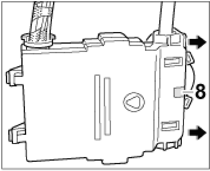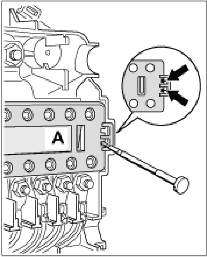 2. Carefully lever off the cover -A- , e.g. with a screwdriver -arrow-. This will break the locking tabs and the cover can be removed.