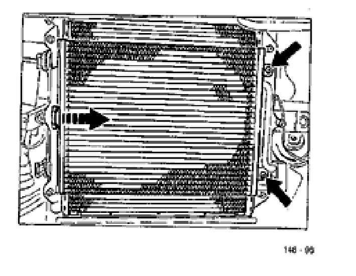 3. Completely remove the front spoiler. Remove the air guide to the condenser and pull off the electrical plug connection on the temperature sensor.