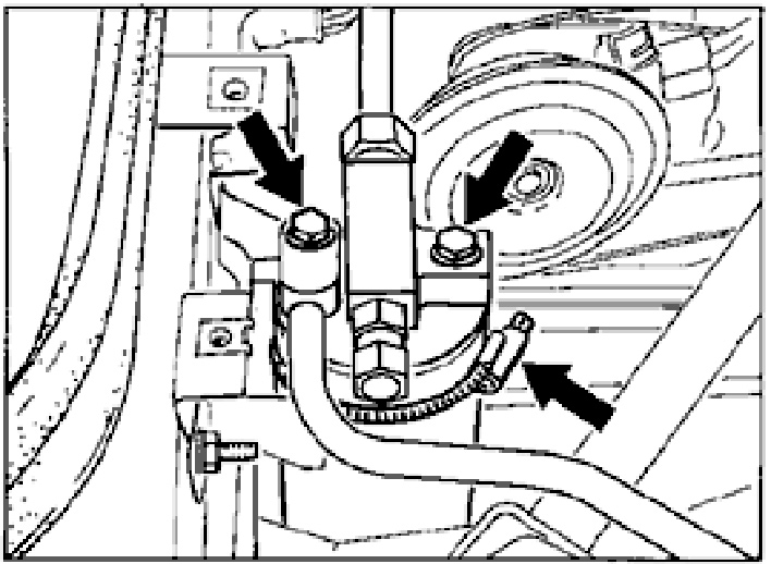 2. Tighten both hexagon-head bolts on fluid tank with 6 Nm (4.5 ftlb).