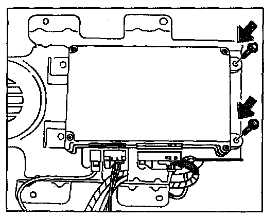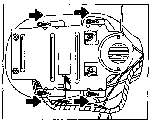 3. Lay the holder with the control unit on the floorpan and screw it down with the 4 fastening screws.