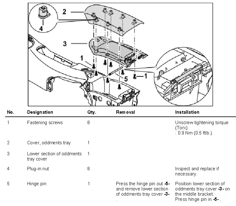 Disassembling and assembling cover for the oddments tray