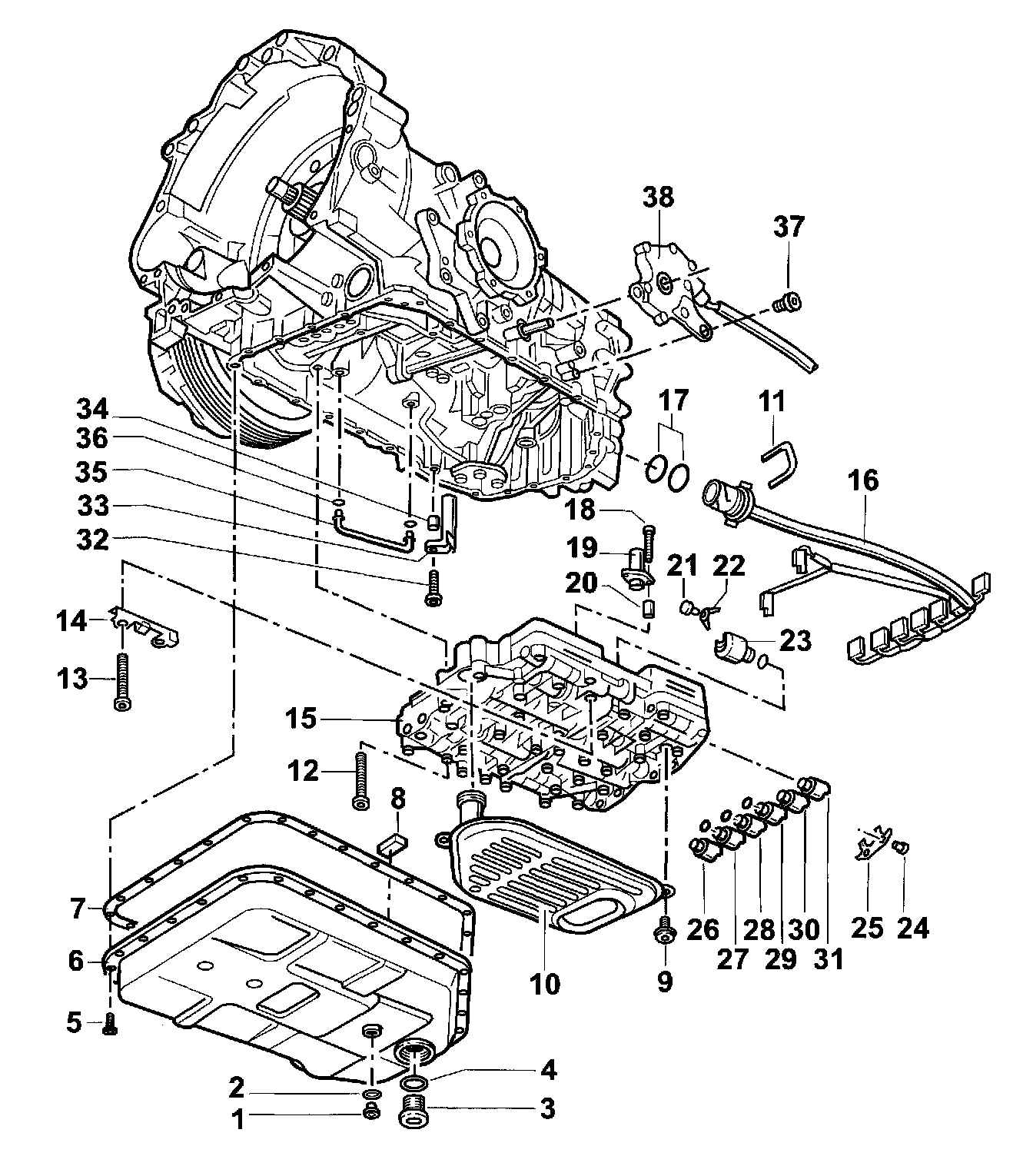 NOTE: The engine must not be started with the ATF pan removed or without ATF filling.