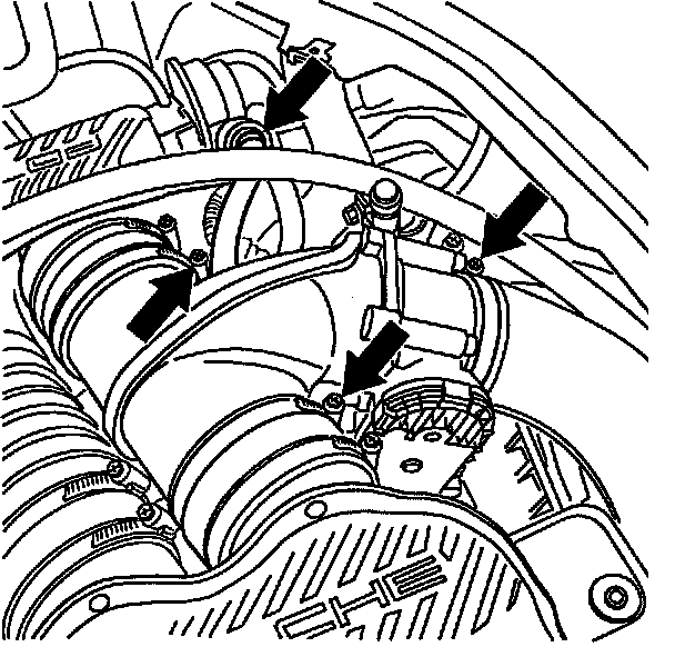 4. Undo holder for throttle body on the crank case. Swivel the intake distributor with throttle body upwards by approximately 45° and detach the oil filler hose.