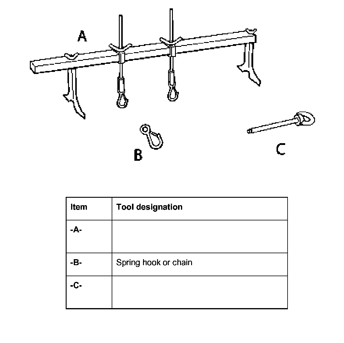 9. Fix the upper axle struts with tension jack VW 552. This involves tensioning the axle strut slightly because otherwise the top ball joint can be damaged. When doing this, insert the -tension jack into the top opening of the wheel well (double panel, under the wheel housing cover) and into the axle strut (do not disconnect the air spring connection!).