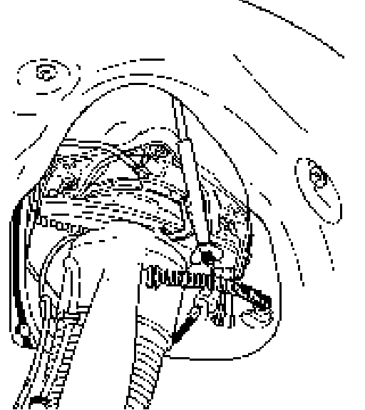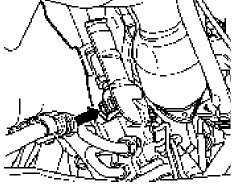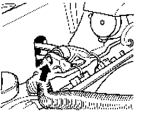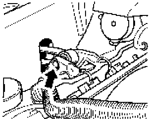 11. The screw in the steering shaft is removed from the wheel well. Release the coolant hoses from the holders on the body. Unscrew the -screw in the steering column (arrow)- from the steering gear.