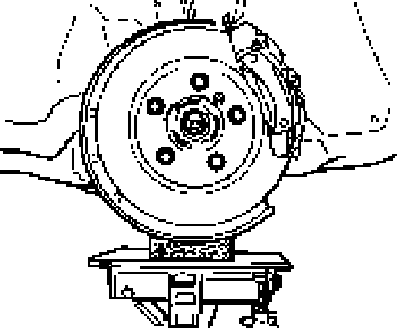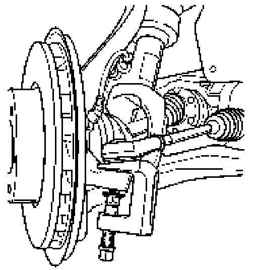 ^ Do not raise the wheel suspension higher than the normal vehicle position (vehicle resting on wheels). When raising the suspension, use a suitable -intermediate layer (hard rubber)-. Do not damage the brake cover plate.