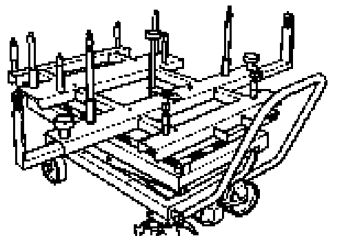 ^ The lifting platform with the -mounting frame- must be secured firmly under the front axle carrier at the points provided.