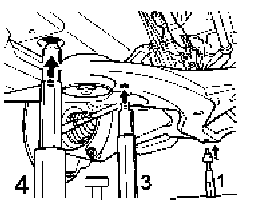 ^ Do not raise the wheel suspension higher than the Formal vehicle position/ (vehicle resting or/wheels). When raising the suspension, use a suitable intermediate layer (hard rubber).