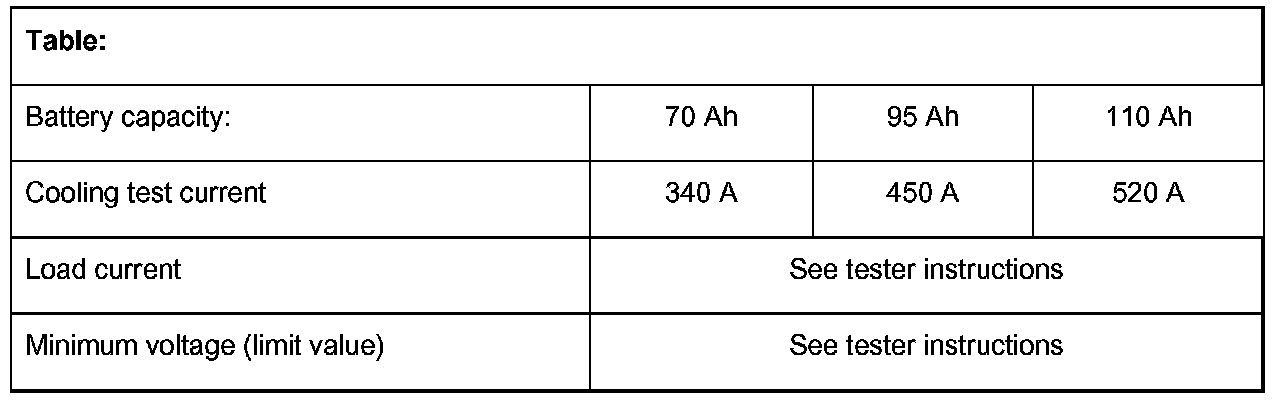 - As the load current varies, the current must be set depending on the battery capacity (operating instructions of test device).