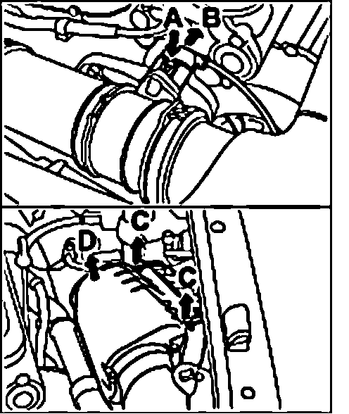 6. Push on plug -arrow C- until the locking tab -D- can be felt to engage.
