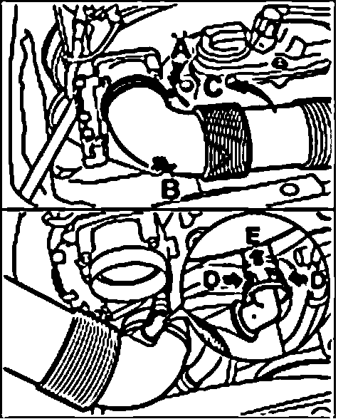 7. Release vent hose -arrows D- and pull it off -arrow E-.