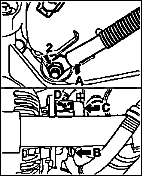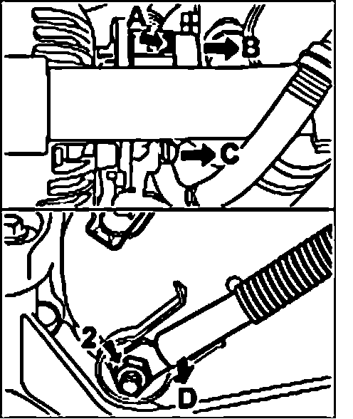 14. Unscrew fastening nuts -2- and remove the B+ lead -arrow D-.