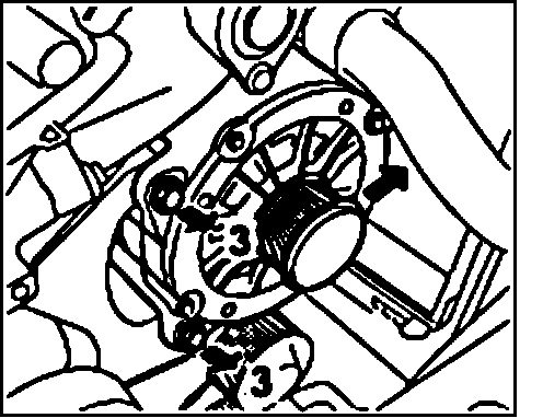 15. Unscrew fastening screws -3- and remove generator to the side -arrow-.Press generator out of the bracket using a lever if necessary.