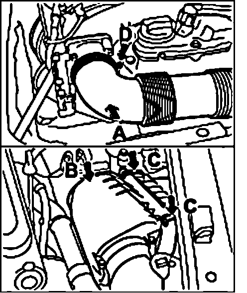 4. Release air cleaner cover -arrow C- and pull upwards -arrow D-.