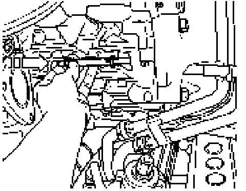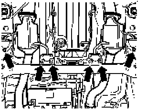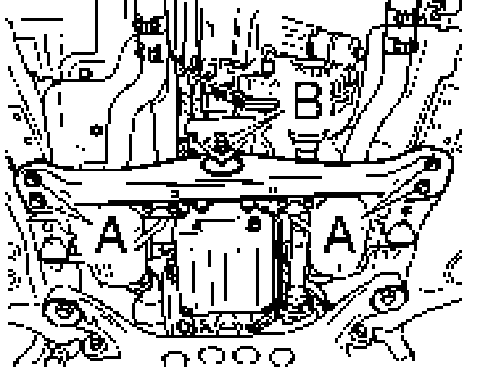 13. Raise transmission a few centimeters and notch transmission cross member-B-.