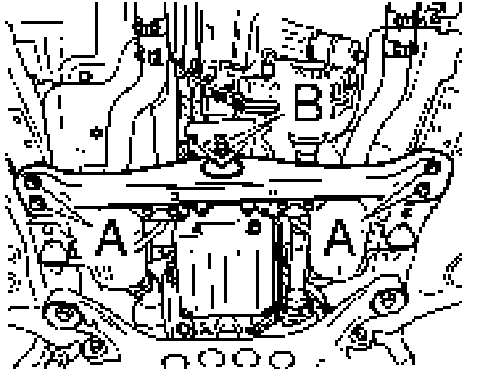6. Raise transmission a few centimeters and install transmission cross member on holder -B- .
