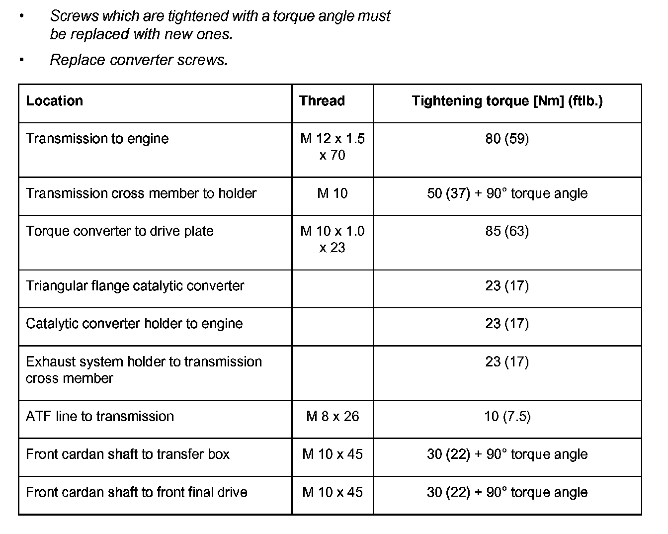 Note: Screws which are tightened with a torque angle must be replaced with new ones.