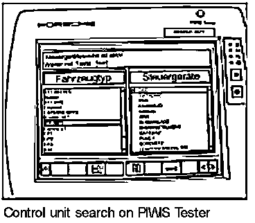7. Connect the Porsche PIWIS Tester PIWIS Tester 9718 to the input socket in the vehicle using the adapter lead and switch on the ignition. Switch on the Tester and select the vehicle (option: Diagnostics).