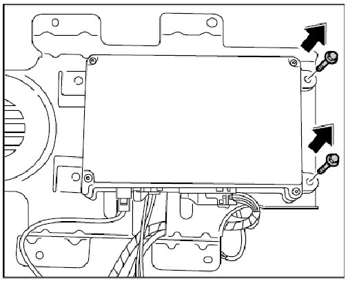 3. Lay the holder with the control unit on the floorpan and screw it down with the 4 fastening screws.