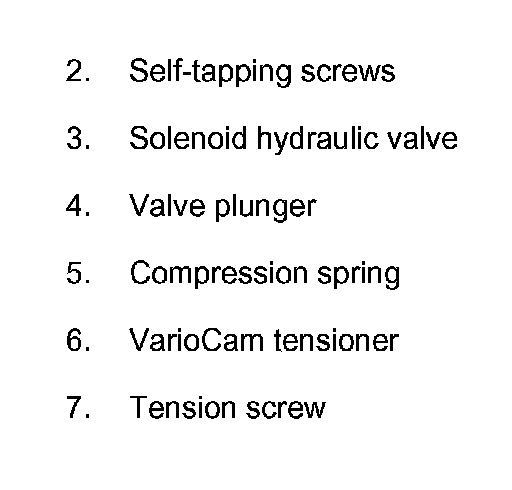 - Install the solenoid valve only if the VarioCam tensioning element is vertical. Correct seating of the compression spring (No. 4) is no longer ensured if the solenoid hydraulic valve is installed horizontally (installation position of engine).