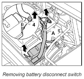 4. Screw off the ground strap >> negative terminal on battery disconnect switch << and remove the battery disconnect switch from its installation position.