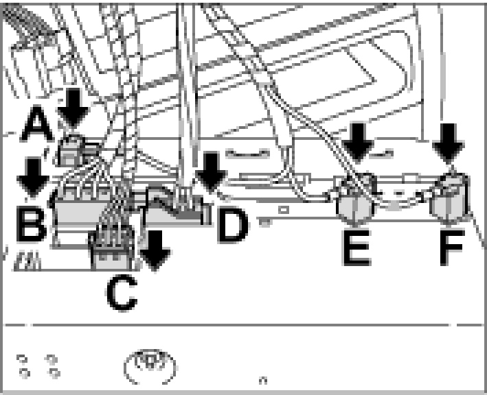 6. Release and unplug the electrical the plug connections in the order -C, B, D-.