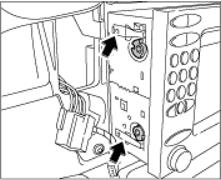 2. Insert an Allen wrench sideways into the bolts of the locking hooks of the PCM.