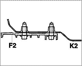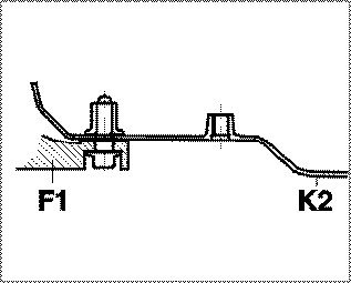 ^ Do not install front-axle cross members with one fastening screw (F1) in vehicles with two body mounting points (K2)!