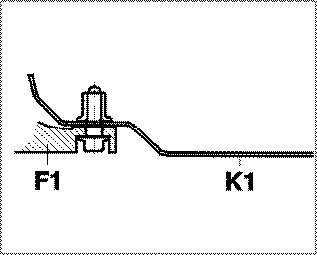 Front-axle cross member with one fastening bore -F1- and body with one fastening point -K1-.