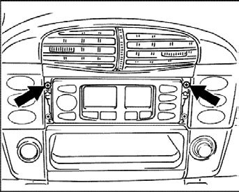 2. Unscrew -fastening screws- (2 ea.) and pull the heating/air-conditioning control out of the dashboard.