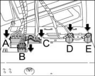 1. Push on the electrical plug connections for the display and operator control unit in the sequence -C, B, A- and the antenna amplifiers -D, E- until the plugs are felt to engage.