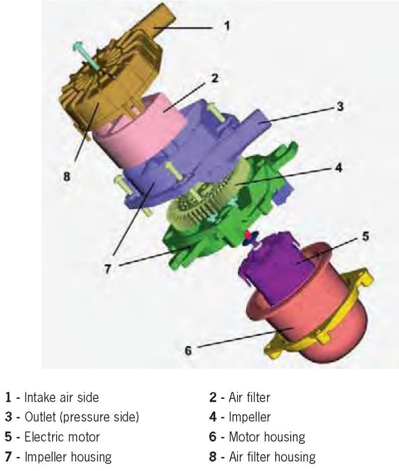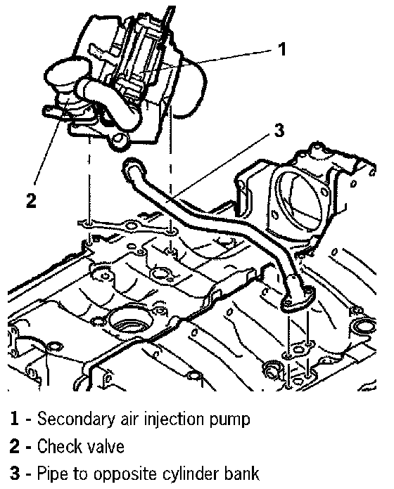 Secondary air injection is activated by the Motronic control module. The air supplied by the secondary air injection opens the check valve through excess pressure, the air is then blown through the lines to behind the exhaust valves of the respective cylinder heads. The injection of secondary air leads to a reduction of the CO and HC pollutants that are created by operating with Lambda < 1, when starting out with an cold engine.