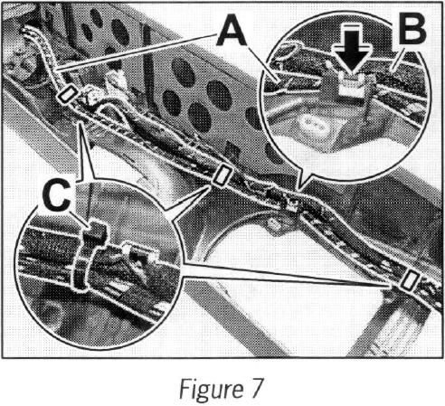 Secure wire harness (retrofit kit) to the standard wire harness with tie-wraps --> Figure 7 -C-.