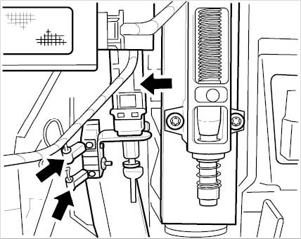 2. Carefully pull off the connector from the clutch pedal switch (and interlock switch if necessary), see -Arrows-.