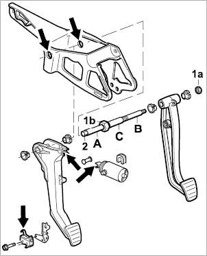 1. Grease bracket for brake pedal.