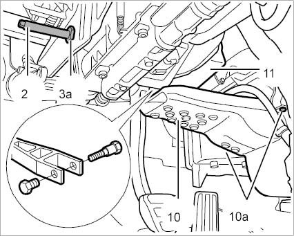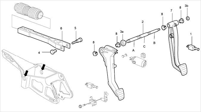 The brake pedal can only be removed when the clutch pedal has been removed.