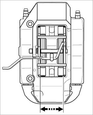 --> The brake pads must be replaced when the brake pad warning indicator lights up, but no later than when there is a residual pad thickness of 2 mm.