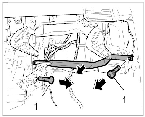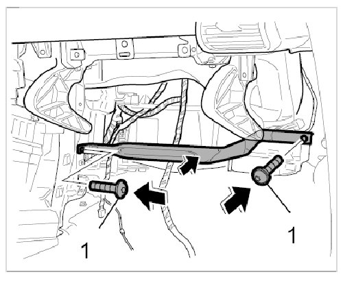 1. Unscrew the two fastening screws -1- of support strut and remove support strut.