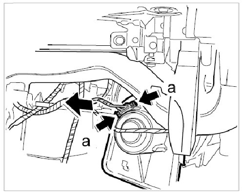 2. Squeeze the plug -a- on the blower motor and pull off.