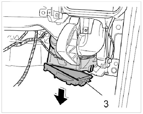 4. Remove the cover -3- for the blower motor and pull out the blower motor downwards.